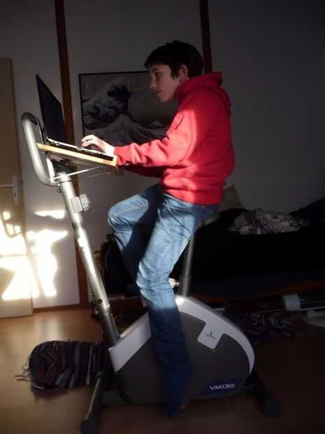 Consejos de salud moderna pueden dejar en una falta a veces - se supone que hacer ejercicio por lo menos 45 minutos por día, comer 5 comidas pequeñas, hechas en casa, dormir lo suficiente, llevar una plena vida y práctica activa descanso en familia. Y no olvides beber entre 2 y 5 litros de agua cada día. Pero cuando voy a trabajar?"preguntarás. No temáis. Este gadget te permite combinar el trabajo y el ejercicio de una manera saludable y práctica. Con sólo un pocos, baratos materiales puedes construir tu propio - tener suficiente tiempo en la tarde para ver TV y comer patata lasercut chips, sabiendo que han cumplido plenamente con los deberes más activos de su día.