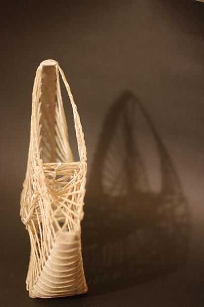 Me inspiré por el método de diseño de Gaudi´s que consistía en colgar los modelos y el diseño de la estructura a través de varias cuerdas y peso. Las cuerdas se enclavijan juntos y los pesos fueron exhibidos a lo largo de las cuerdas. Una vez que el modelo se terminó, se convirtió, como una estructura comprimida.