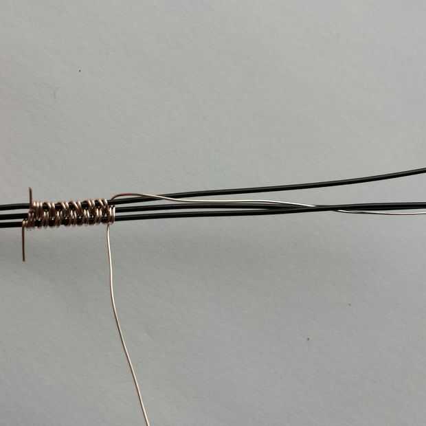 Para el alambre bases que se tejen alrededor, cortar alambre calibre 20 alrededor de 3" de largo. Dejé un poco excesiva para que pudiera enrollamiento de los extremos del cable (en lugar de lo que les permite empujar los agujeros en el interior de mi mano..). Para los equipos de soldadura sin embargo, los extremos de soldadura funcionaría perfectamente.