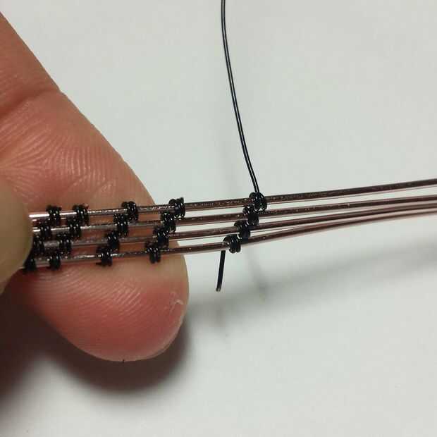 • (o) = envolver por todo lo alto; Esto significa que usted Envuelva el alambre fino detrás de un grueso alambre base abajo y alrededor.