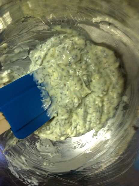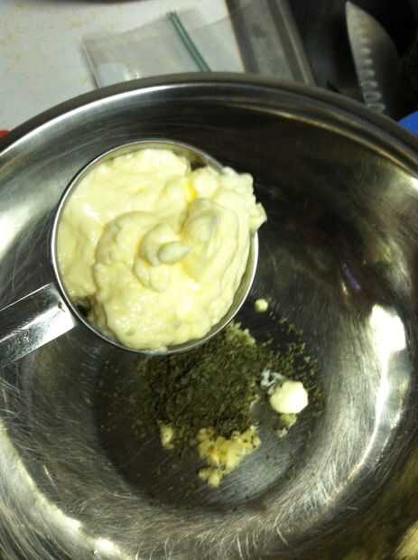Mezclar muy bien para que cada bocado tenga ajo y albahaca.