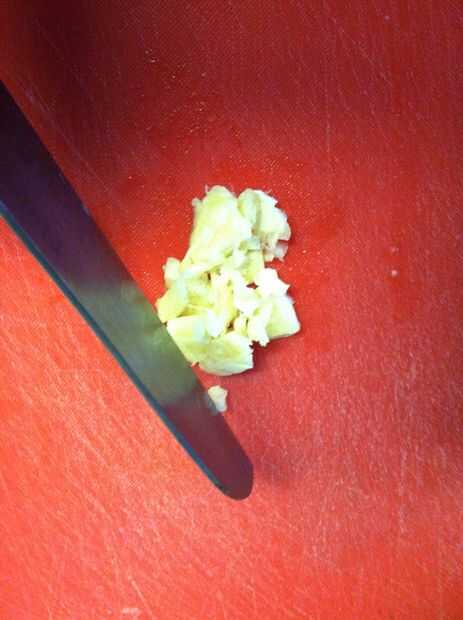 Picar 2 dientes de ajo y colóquelos en un tazón.