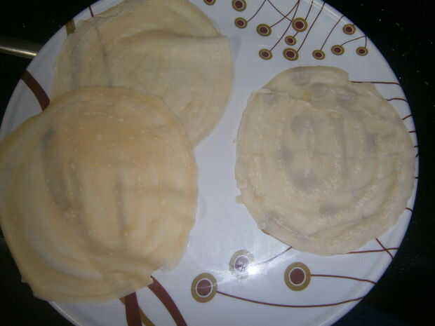 Calentar la cacerola plana y verter la mezcla poco en ella y hacerla en forma redonda como se muestra en la imagen.