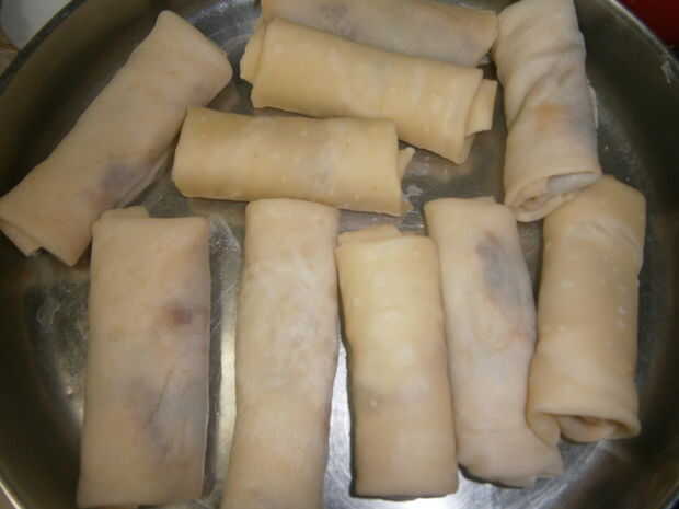 Tomar cada abrigo y colocar el relleno. El rodillo lo indicado por los números. Así se asegura el relleno dentro de la crepe.