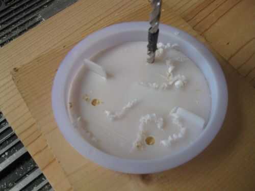 Invierta la tapa de inspección (el fondo de la casa) en un pedazo de madera de desecho y Perfore tres orificios de drenaje de 1/4".