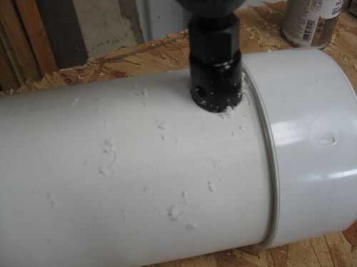 Ahora a la casa. Medir y cortar 4" PVC tubo * para que tenga un tubo largo de 9". Este es el tubo o cuerpo de la casa wren. Hacer el corte cuadrado para la parte superior e inferior bien. Pruebe la colocación de la parte inferior y parte superior de PVC. Enfrentarán el tubo si es necesario. Temporalmente ensamblar la tapa al tubo y perfore un orificio de entrada de 1" justo debajo de la tapa. El orificio de 1" permitirá reyezuelos conseguir en pero es demasiado pequeño para menos deseables aves como gorriones y estorninos. Wren no necesita una percha. Una percha sólo daría otras aves un lugar para sentarse para hostigar a los reyezuelos.