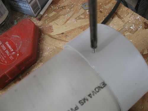 Taladre un orificio guía horizontalmente a través de la cubierta y el tubo. Instale el tornillo de 1/2" en el agujero para fijar la tapa al cuerpo. Esto evitará mapaches de palanca la cubierta y comer los huevos o las crías.