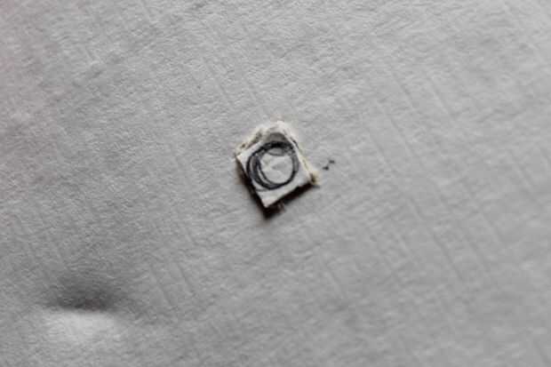 3) con cuidado recorte el cuadrado alrededor del círculo asegurándose de no cortar más allá del borde de guía si es posible.