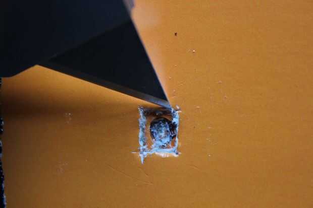 9) Aviso de que el agujero tiene una carga ligeramente alrededor de los bordes. Queremos deshacernos de esto como obstruye la óptica cuando nos tomamos una foto.