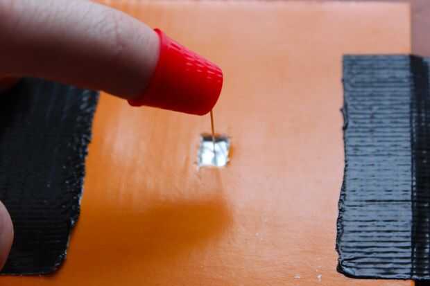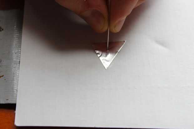 8) Tome cuidadosamente su pin con un dedal si es necesario y presione ligeramente el aluminio girando el perno entre el dedo pulgar y gire la aguja y refinar el agujero.
