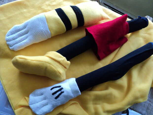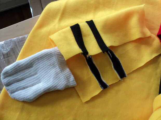 Para tener una apariencia plana de la manga, cortar su base tela amarilla para formar el tubo del brazo.