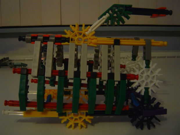 Este es el segundo de una serie de 3 ascensores nuevos en nuestra máquina de la bola de k'nex imposible.Esta elevación es bastante pequeña, lo que es útil para espacios pequeños donde tienes que hacer que la bola suba un poco. Ahora, sé que puedes es