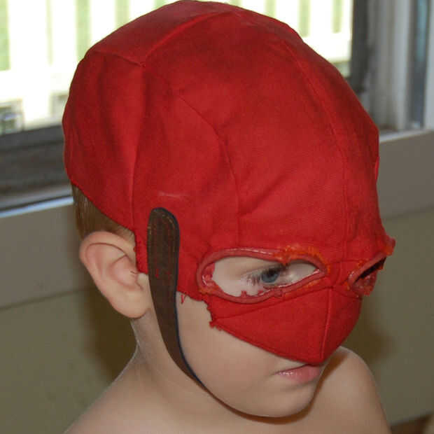Presiona las costuras de la máscara era un oso (particularmente el ojo-hoyos). Y al final, tuve que recurrir a hot-pegar las costuras en la parte inferior de la máscara. Esto fue lo único podía impedir que meter en los ojos de mi hijo.