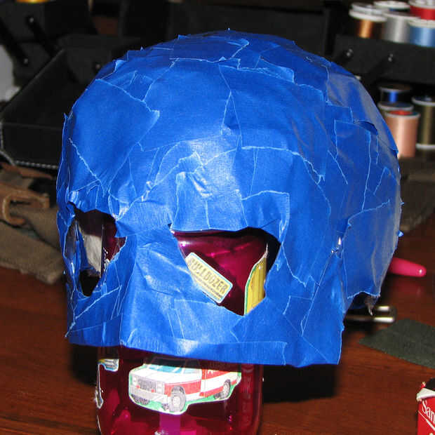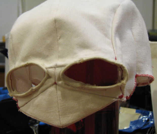 Después el trabajo del tinte, acabé apagado la máscara con un barboquejo hecho de un pedazo de vinilo marrón sobrante de un proyecto anterior.