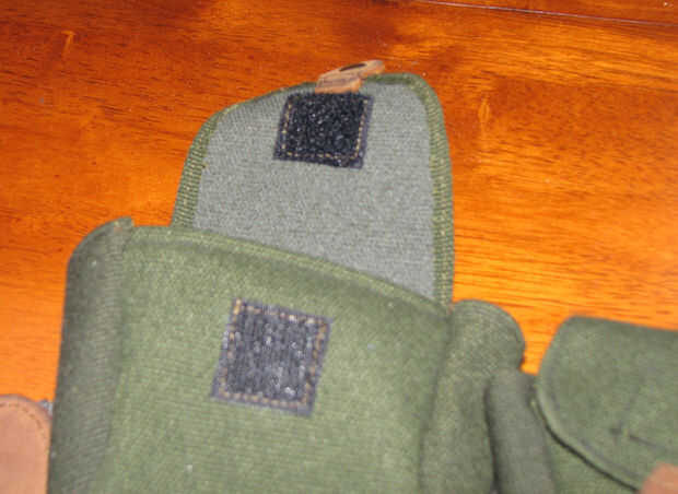 Las bolsas se hacen de algunos de la tela del bolso. Cada bolsa cuenta con cierres de velcro astutamente ocultos detrás de las lengüetas de cuero ornamentales. Él realmente no lleva nada en ellos, pero seguro que se ven cool.