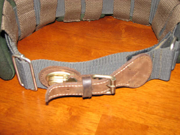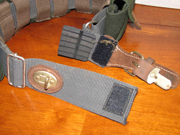 El cinturón está hecho de una de las correas de lona trasera, algunos velcro y una hebilla de cuero de la bolsa más pequeña. Colocar la hebilla de cuero era un poco tedioso. Utilicé la máquina de coser y tuvieron que mano-advance la máquina, ajuste la aguja en los agujeros existentes.
