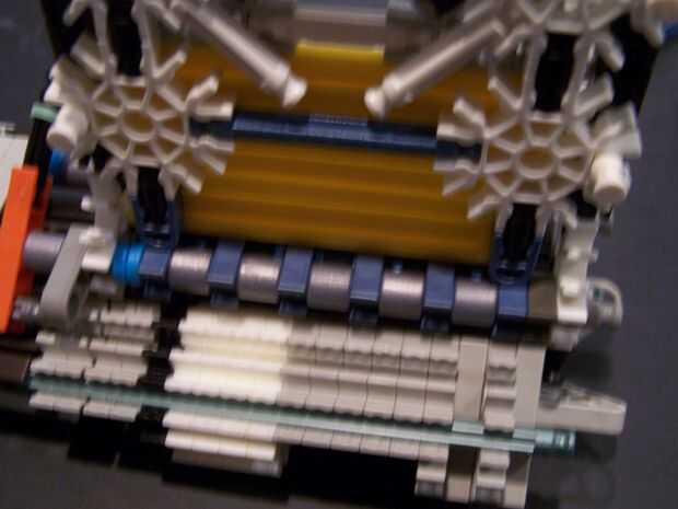 1. buena vista del arma cargada y el famoso "haga clic en acción." Note la barra amarilla flotante que no va a ocupar la zona de disparo hasta que el empuje-Downer se empuja hacia abajo. Esto es debido a las presiones de los conectores de mini-blue que tienen que hacer clic más allá. La barra amarilla luego libremente se mueve. Absolutamente una manera más fácil de evitar fricción extendida que el impacto rojo de pato perfecta, ya es más compacta.