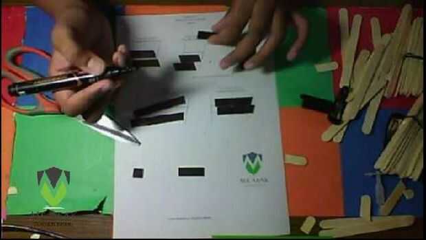 Ahora utilice un marcador permanente negro para todas las piezas de los palitos de color...