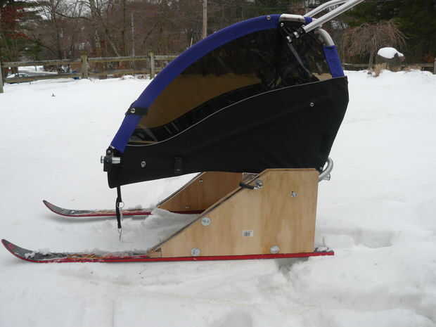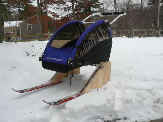 He comprado este Burley remolque para bici carriola de Craigslist para $160 (por menor de $500) cerca de forma perfecta. Mi esposa y vi que se puede comprar un kit de esquí ($230), pero que no es para el más viejo modelo tiene---que las ruedas girando.