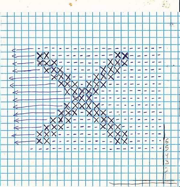 Fila 7. K 6 gris st, 3 st rojo, 7 gris, 3 rojo, gris para terminar.