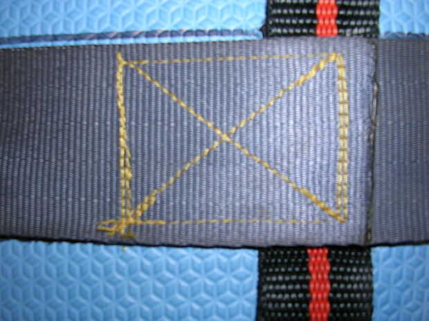 También debían hacer el cinturón de seguridad en una sola pieza como en la actualidad es dos piezas. I cortar a la longitud, superpuestas de los extremos un par de pulgadas y cosido utilizando el patrón X que ver en tiras cosas. Me imagino que hay una razón por qué ellos que cosen el patrón, debe ser fuerte. La tensión del hilo en la máquina era un poco fuera de ese cinturón grueso. Yo debo ha hecho una pieza de ensayo y lo derecho. No lo hice. Mis puntadas están un poco feas a un lado de la correa. También me aseguré que utilicé un hilo fuerte (también diseñado para los pantalones vaqueros) y aguja fuerte (diseñado para los pantalones vaqueros) para esto.
