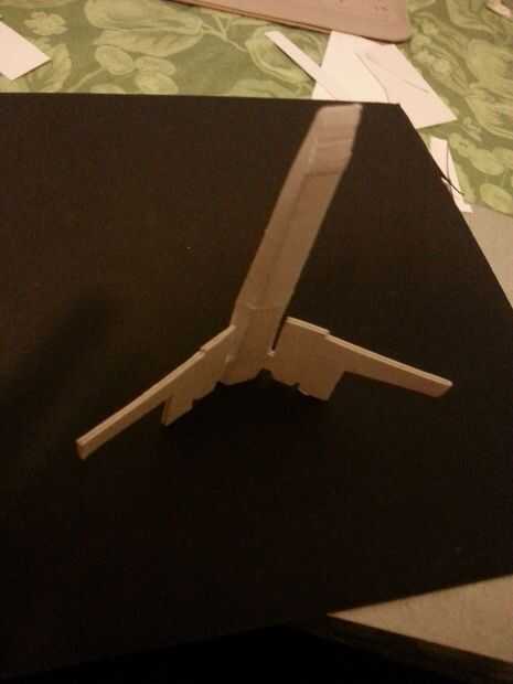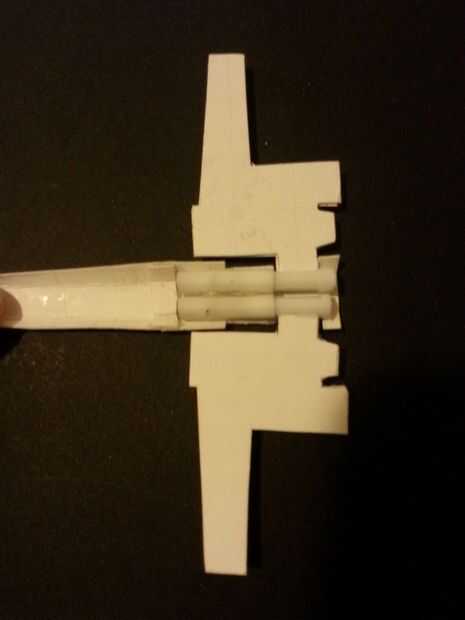 Prueba de que las alas de abajo correctamente y en están alineadas. Usted puede poner pegamento caliente en la varilla giratoria (mecanismo de lápiz) y pegar el ala en o puedes probar con pegamento. Una vez que las alas estén firmemente en su lugar usted puede pegar la parte no giratorias de las barras a la parte inferior de la x-wing.
