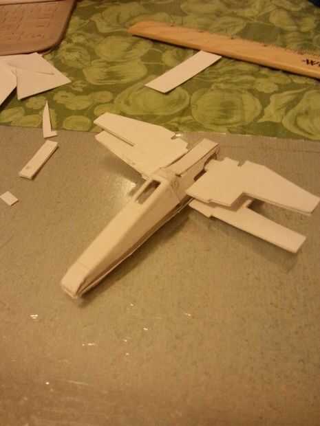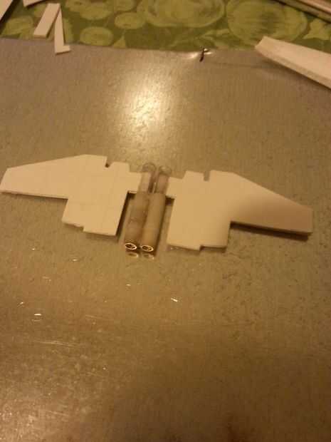 Pegar las alas principales en el mecanismo del ala superior y pégala en la parte superior del cuerpo de la x-wing. Cuando pegar el mecanismo superior Asegúrese de que usted la línea el mecanismo superior paralelo al mecanismo de la parte inferior para que las alas son paralelas.