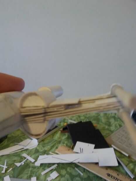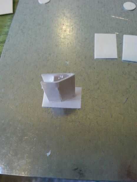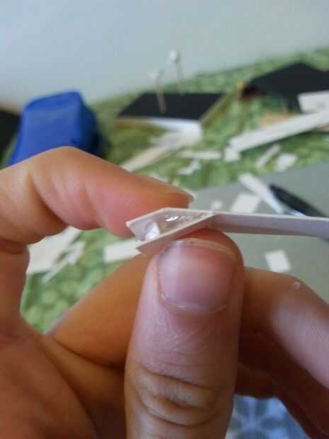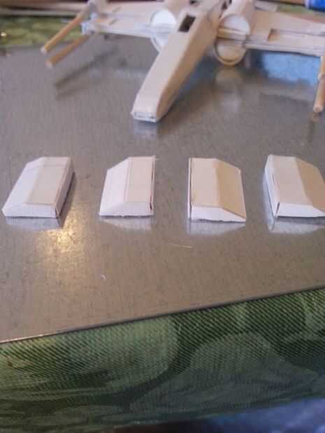 Así que el ala de sistemas de refrigeración er... Realmente no sé lo que estas partes hacen honestamente, pero que están en las fotos. Básicamente empiezo con un rectángulo mientras el componente de medio círculo y el ancho suficiente para que la mitad del rectángulo cuelgue fuera del borde del ala. A partir de ahí me sale un rectángulo similar (más amplia aunque) y doble en el punto medio del rectángulo ala (ver imagen). Luego pegar una tira de cartulina (Asegúrese de que usted recuerde la altura) al rectángulo doblado. Luego pegar el rectángulo doblado y el rectángulo original en un polígono raro. Recortar el rectángulo doblado y pegar la parte delantera y espalda con cartulina y del mismo modo.