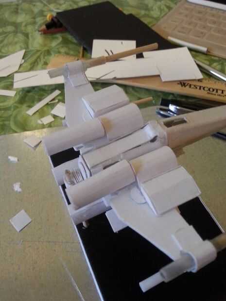 Además, en este paso usted puede agregar cualquier otros adornos para dar el volumen de su x-wing y hacer pop! Sólo usé esos cuatro círculos no utilizados en el paso de los propulsores para añadir detalle.