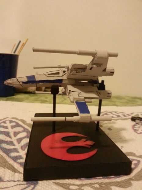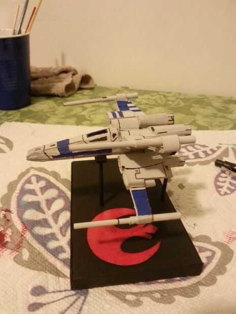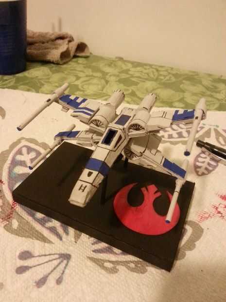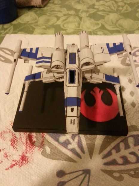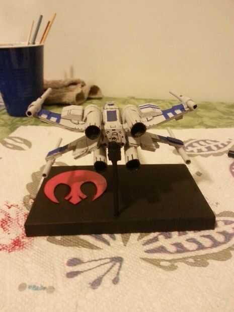 Para la pintura usé pintura acrílica con un gris claro para el cuerpo y azul puntos culminantes (utilice un pincel muy fino y cuidado de trazos). Después de que la pintura esté seca puede utilizar plumas Pro Manga-cómic (http://www.usartsupply.com/SAK-50201.html?gclid=Cj...) o una pluma fina similar que seca rápidamente y no mancha. La base fue coloreada con negro con el símbolo de ser pintado de rojo. Necesita varias capas y el cuerpo gris muchas veces antes de comenzar con los detalles en azul.