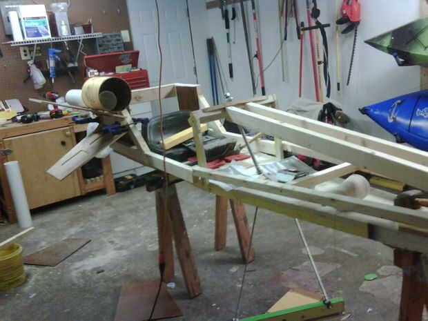 Empecé con mi coche de 2010 que también fue el coche de mi padre 2008... Había despojado hasta los postes de madera, tomó una foto y la foto a imprimir. Usando papel de calco sobre la foto fleshed hacia fuera cómo sería el nuevo diseño de coche. La primera cosa que noté es que iba a ser más largo y más ancho que el marco que estaba usando. Anticipó que la anchura podría plantear un problema con el transporte en mi carro. Así surgió la idea de hacer el coche modular y montaje in situ antes de la carrera.