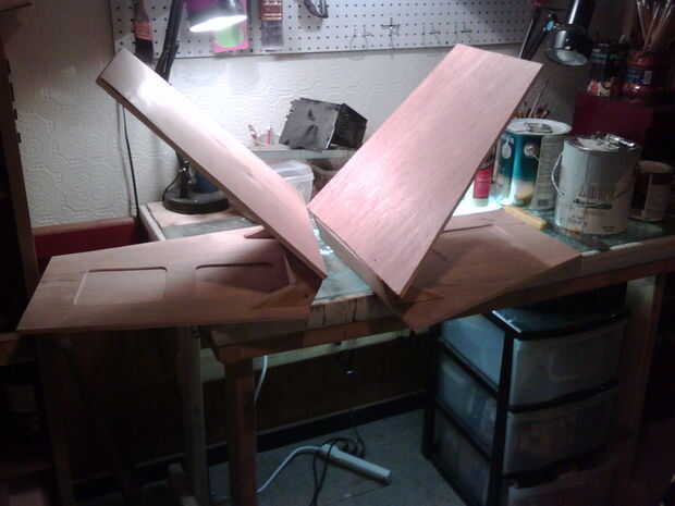 Otra característica interesante del coche era el cono de nariz. Una de las reglas de NASBRA es que el coche debe tener un robusto gancho de ojo en el frente. No quiero arruinar el look fresco de la nariz de una X-wing así que creado un cono de nariz que se levantó para revelar un gancho oculto. La nariz fue hecha de madera y cartón y fue montada usando una pequeña bisagra gabinete metal.