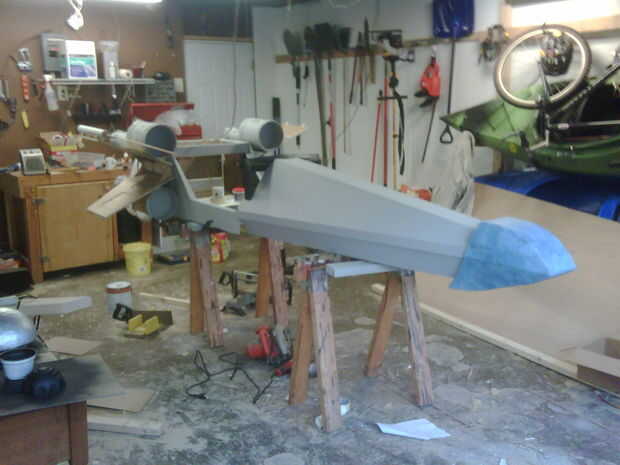 Lo primero que hice fue marco la longitud adicional hacia el frente y parte trasera del coche. También tuve que volver a formar el frente entero del vehículo desde el asiento hacia adelante. Nuevamente hice esto dos veces hasta que conseguí la forma que estaba buscando. La parte trasera del coche era básicamente una caja hueca donde montado en las alas y el droide se sentó. Necesitaba tener acceso al interior de la caja para poder colocar y quitar las alas.