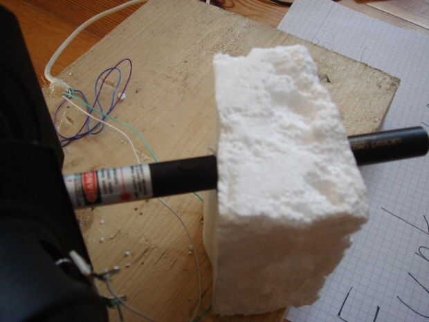 Simplemente puse el laserpen en un bloque de styropohr. (imagen)