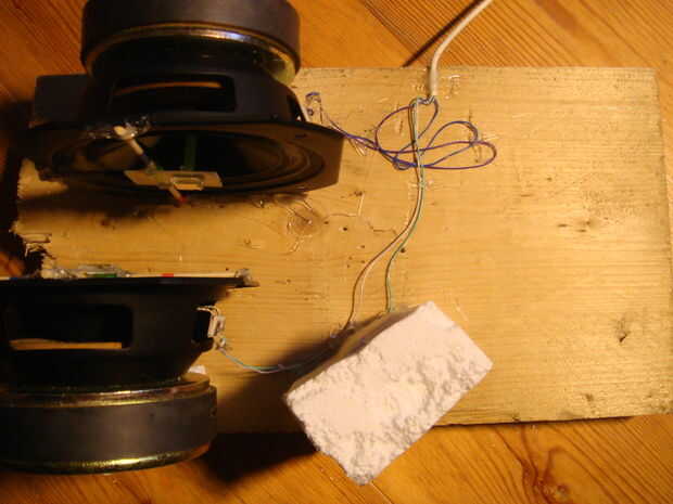 Tengo gluded los altavoces en un pice de madera y stabilisaisde con un bloque de styropohr. (imagen)