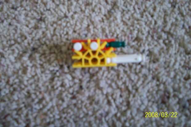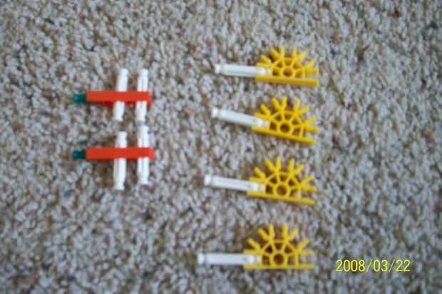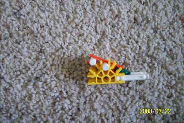 Esta es el verdadera arma de K'nex más pequeño. Y NO UN BLOQUE! ¿Awesome, derecho? No es sólo el más pequeño, pero utiliza menos piezas. 3 piezas para hacerlo. Una cosa naranja (no sé lo que se llaman) y 2 espaciadores azul (uno por disparo, uno para