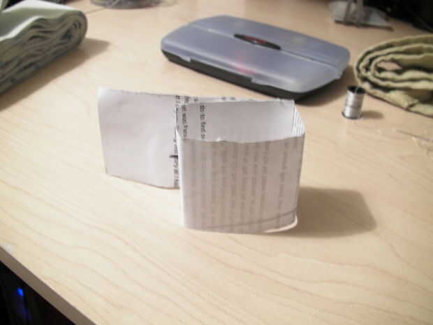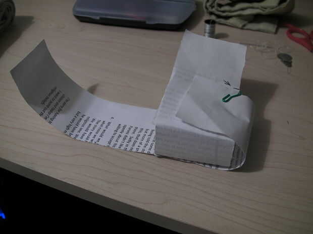 -Envuelva otra tira alrededor de la altura de la cámara para producir una cubierta inferior y la aleta. (Comenzar desde el mismo lado que la "envoltura").
