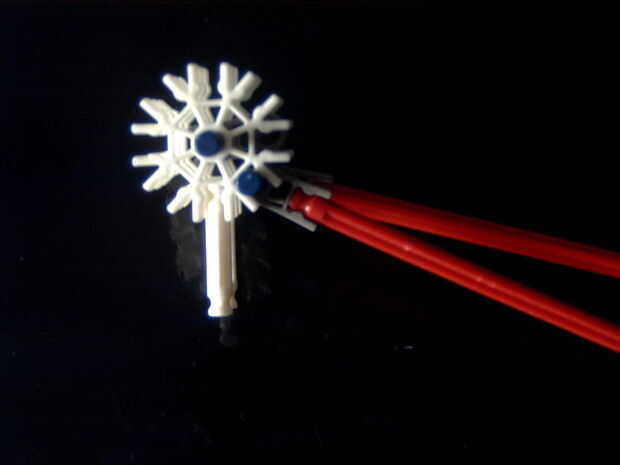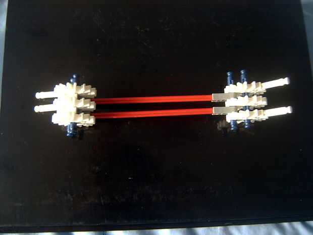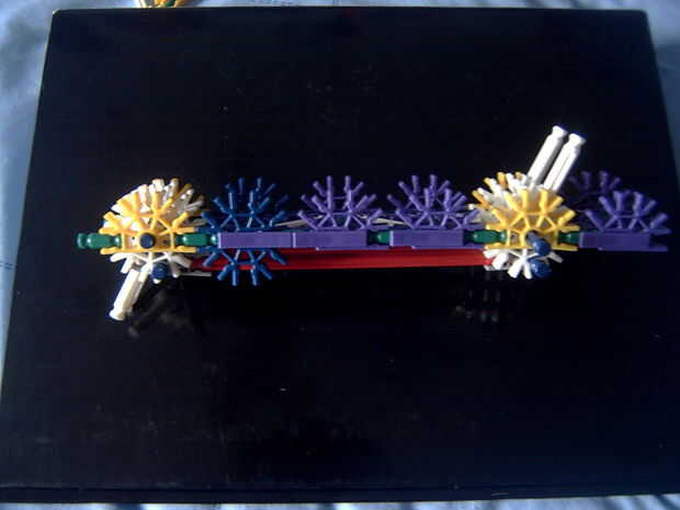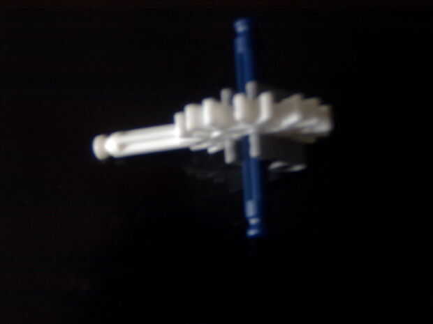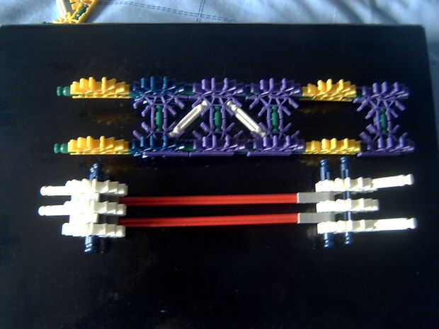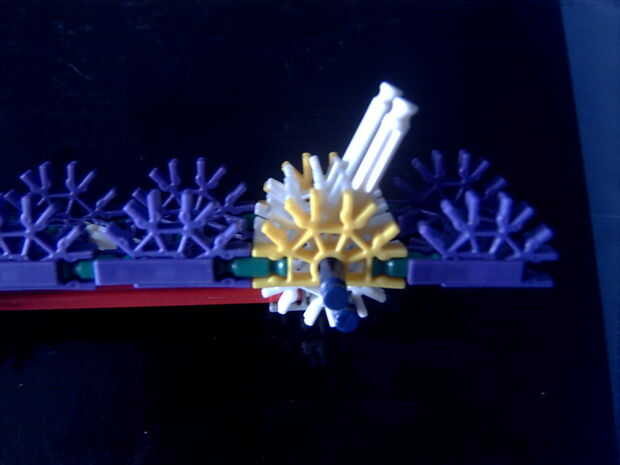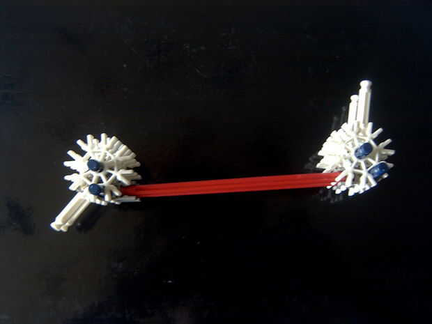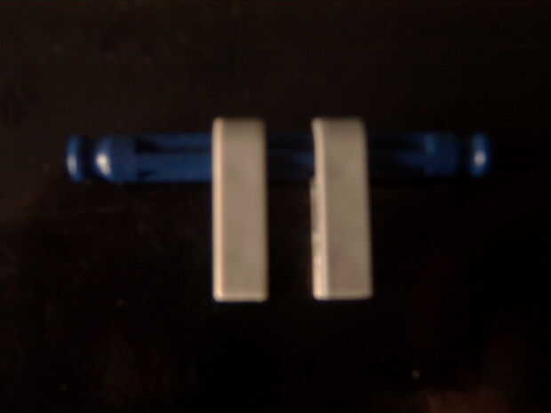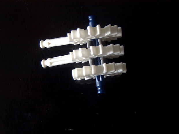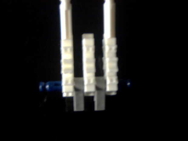 7. clip ambas piezas juntas y añadir una barra azul axel a través de la segunda poco hicimos