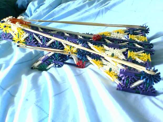 1. hacer una banda de goma como esta, solo la secuencia a remolque de atar junto (la cadena tiende a fijar mejor el mecanismo del gatillo de trinquete) la banda más más energía, mina tiene 2 por cada lado.