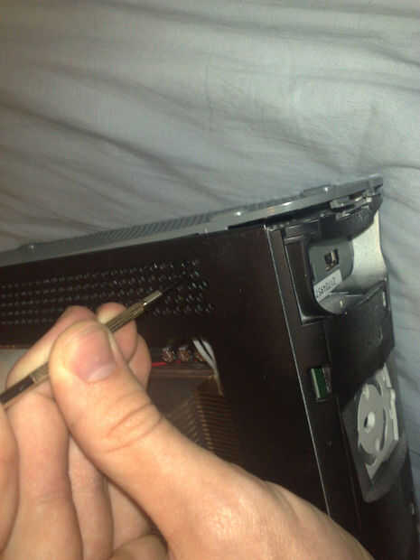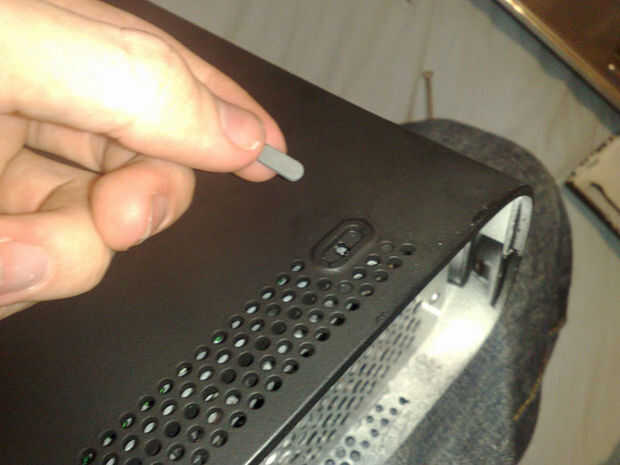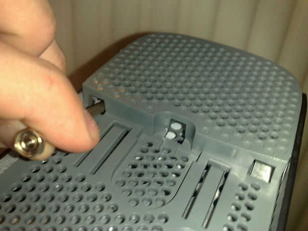 Siguiente paso es quitar la rejilla de ventilación inferior y superior, para hacer este uso uno de las pequeña plana palas desarmadores, examinando en los agujeros en el lado de la caja debe ver 3 fichas plástico empujando contra éstos pueden liberar las rejillas de ventilación de la caja, hay 3 pestañas de plástico en cada lado.