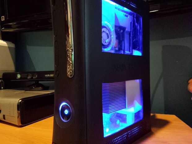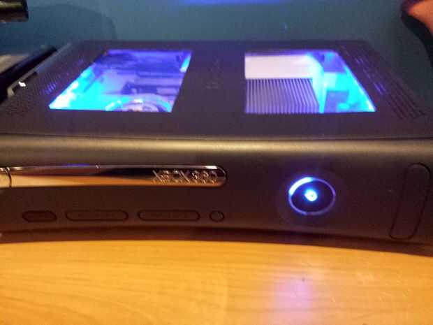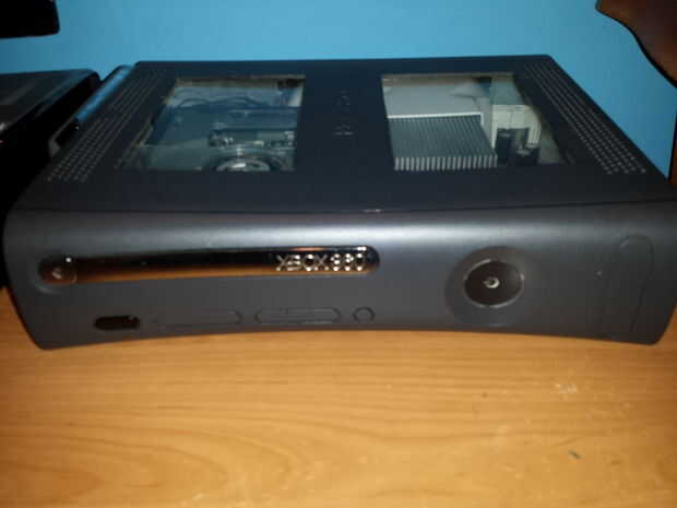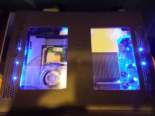 esta Xbox tiene varias modificaciones hechas a él. Hay 2 piezas de plexiglás a ver el interior. La bandeja de disco ha sido ahuecada por lo que puede disco girando en la xbox. También tiene 2 tiras de led que cambian de color en un control remoto. El led frontal se ha cambiado al azul más bien green y el disco duro ha sido ahuecado para que pueda ver el interior de eso también. Estoy muy contento con el resultado de este proyecto.