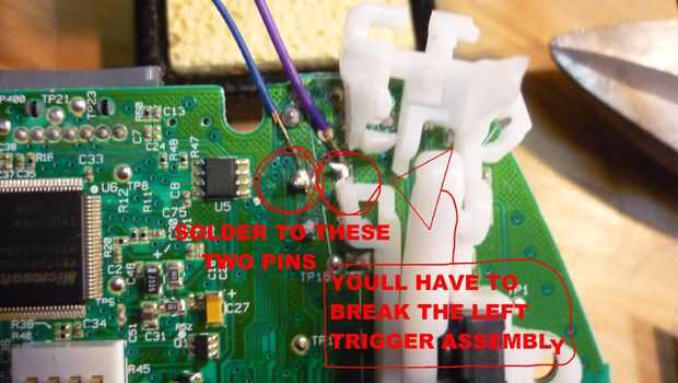 También, pernos de la palanca analógica izquierda están enterrados debajo del ensamble del gatillo izquierdo, por lo que tendrás que cortar un poco. Solo pegamento detrás cuando anuncio va a estar bien. Además, se debe eliminar el gatillo y es primavera antes de romperla.