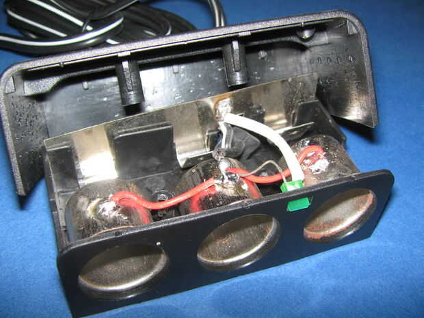 Localizar la conexión de tierra (GND) en el receptáculo circular medio y + 12 voltios (12V) conexión en la placa trasera y utilizar su fiel cautín o pistola de desconectar el cableado ya que no será necesario (pero por supuesto mantener el encendedor enchufe y cables para un potencial proyecto en el futuro). También desconectar el cable de LED con la camisa blanca en él por lo que facilita las cosas en el siguiente paso.