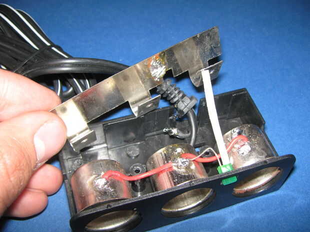 Después de habrán sido desoldar las conexiones de Levante la placa de conexión de 12V de la caja para liberar los cables y con cuidado el lugar que en él ha de la ranura una vez el cableado ha sido liberado.