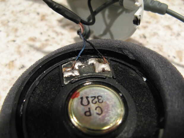 A continuación desmontar uno de los audífonos de los auriculares. Tenga cuidado de hacer esto como auriculares diferentes separados de diferentes maneras. Algunos sólo tirón de nuevo, otros twist. Acabé rompiendo los clips que mina juntos por lo que tiene tener que pegarla de nuevo.