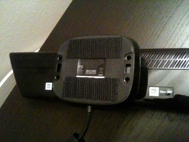 Tiempo para colocar el sensor! Coloque el sensor en el solo gran tira de velcro en la parte superior de la placa cuadrada, conseguir el aparato tan cerca del borde de la placa y el televisor, como permitido.