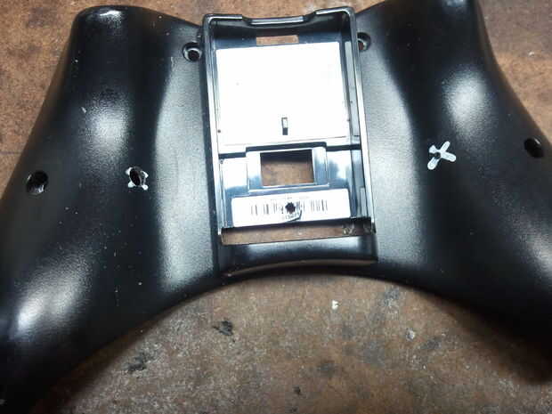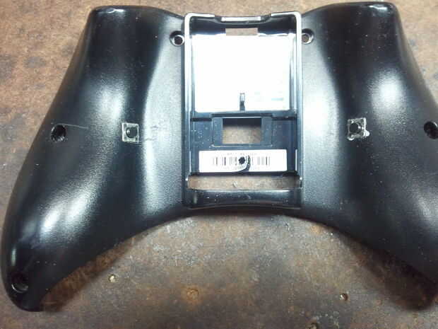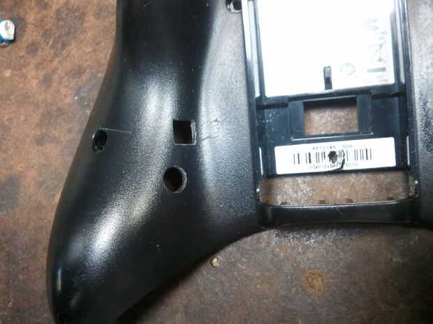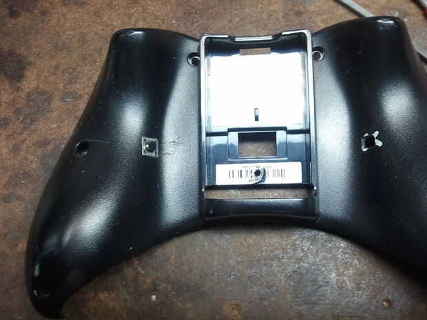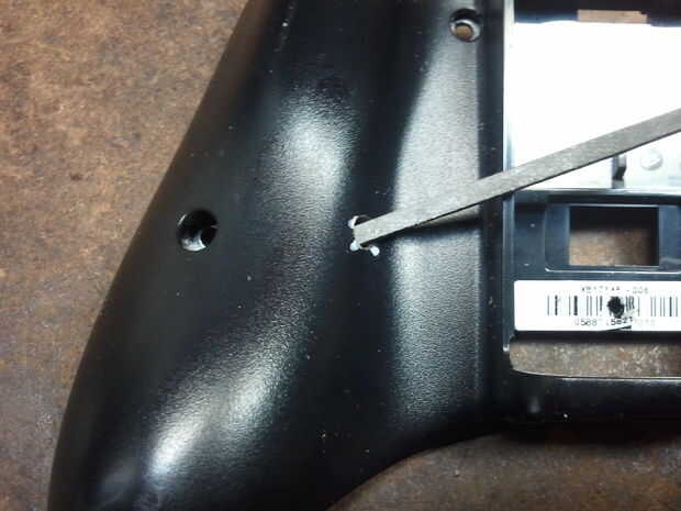 Usé una 1/4 broca para el resistor variable de la Ω de 1M y 3/16" para los botones, tanto brad señaló. Brocas de punta de Brad se desean porque dan una mayor precisión de la perforación, no tienden a vagar y también crean agujeros mucho más limpias. Para una precisión aún mejor, usé los agujeros piloto; se hace derritiendo el plástico con un alfiler de metal caliente. 3/16" broca fue utilizada para perforar los orificios para los botones a pesar de que 1/4" es el tamaño perfecto ya que es muy fácil de quitar demasiado material del plástico del controlador. Los agujeros para los botones fueron perforados y archivados para adaptarse perfectamente a los interruptores momentáneos.