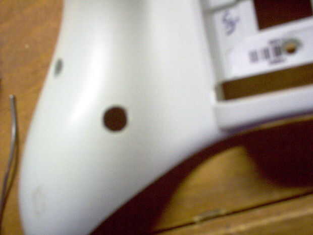 1] perfore un agujero para el botón de compra en la parte posterior del controlador en la posición mostrada en el lado del controlador se mantiene con la mano derecha