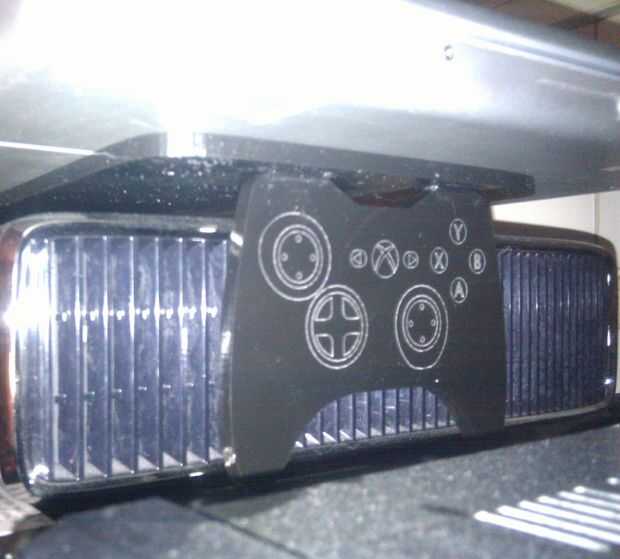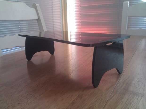 Diseñado este mini soporte simple en Sketchup, exportado a un archivo SVG y lo tenía cortado por Ponoko laser. Las patas son en forma de controladores, pero la escala se reduce hasta 90% por lo que el soporte es alto y lo suficientemente amplia como para limpiar la parte superior y los lados de la XBox. Esto permite el aire circule a través de los orificios de ventilación en la caja y puede poner otros equipos AV en la parte superior si es necesario. Clasificados!