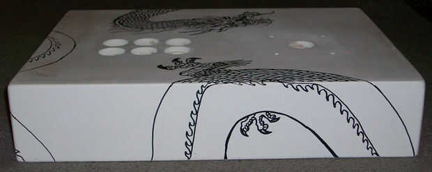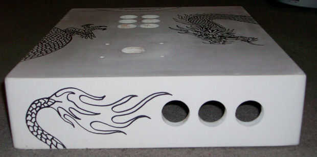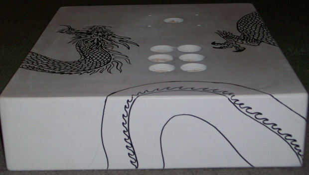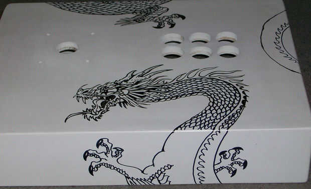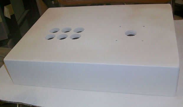 Una vez hecho su trabajo de pintura tiene que montar sus botones y el joystick. Este es un paso bastante sencillo: solo la parte inferior del botón de alimentación a través de los agujeros que hiciste y enroscar la tuerca de plástico. Si los botones vinieron con los switches cherry ya instalados, probablemente necesitará quitar primero antes de probar y montar.